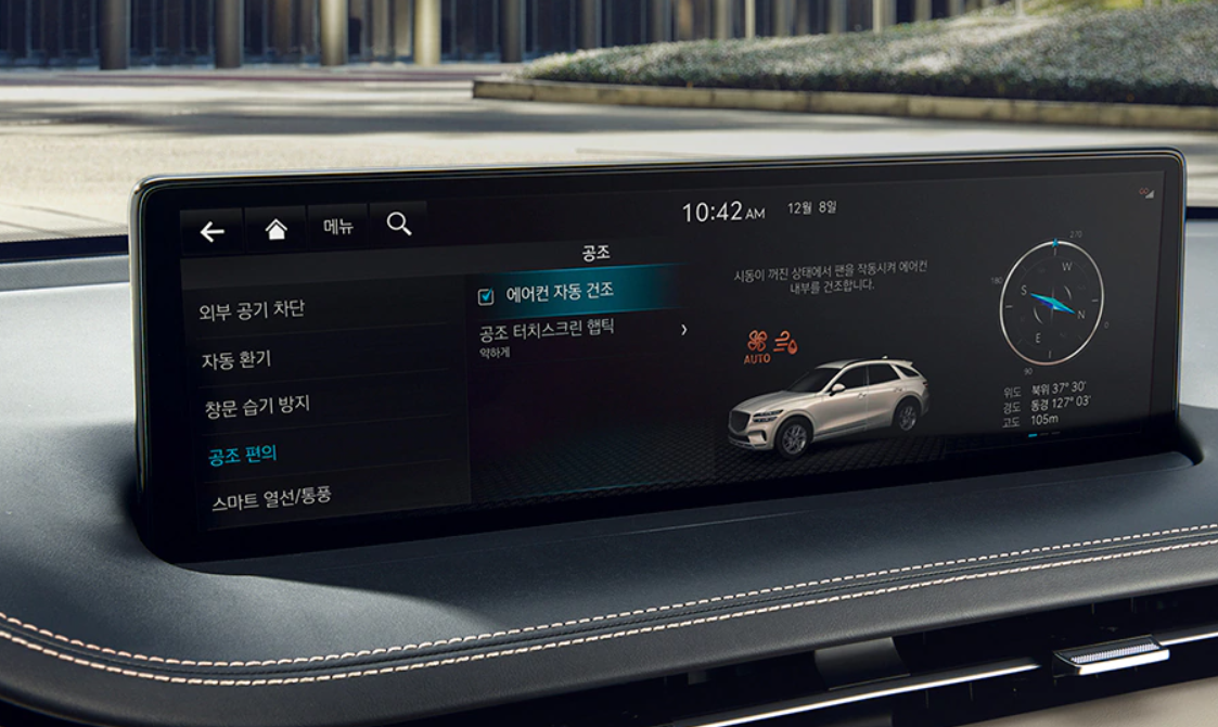 고해상도 와이드 스크린을 활용한 분할 화면 기능이 적용되었으며, 서버 기반의 자연어 음성인식이 가능해 공조, 창문, 선루프, 테일게이트, 시트 열선 & 통풍 기능 등을 편리하게 제어할 수 있습니다. 유선 및 블루투스를 통한 스마트폰 연결 없이도 뮤직 스트리밍 서비스를 즐길 수 있고, 최신 지도 및 각종 소프트웨어는 자동으로 무선 업데이트됩니다.