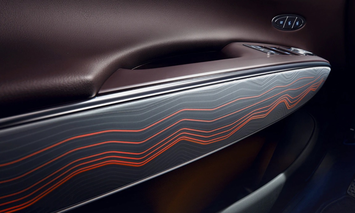 조명 기능이 추가된 실내 가니쉬로 엠비언트 무드램프와 함께 어우러져 실내 고급감을 극대화합니다.