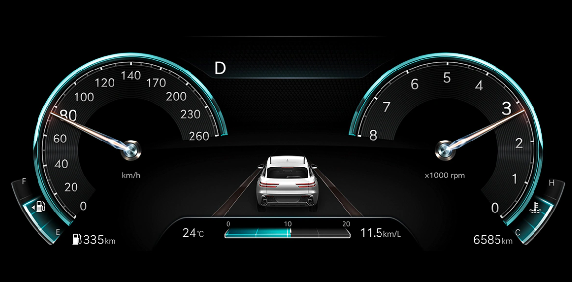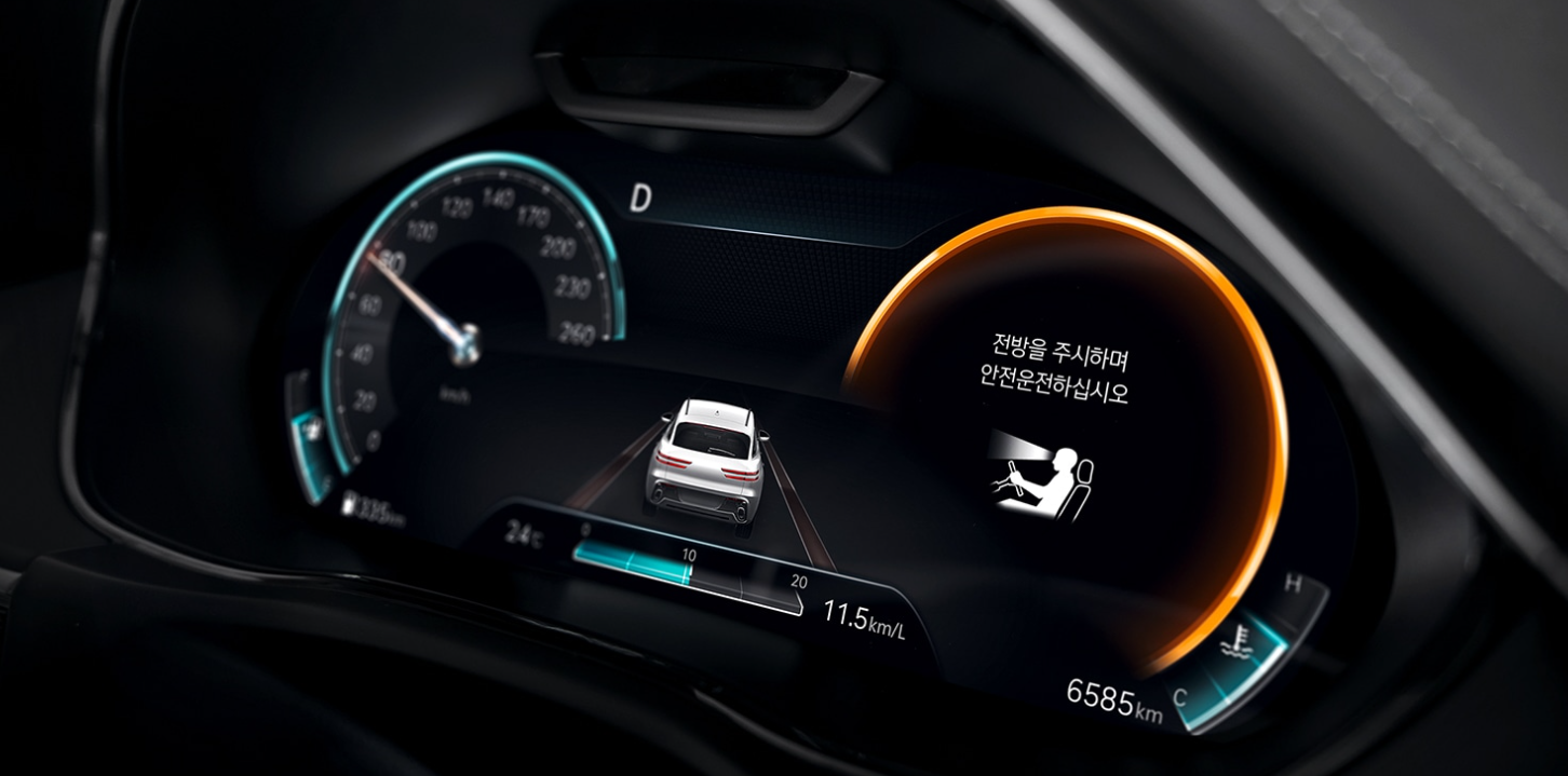 고해상도 대화면의 TFT LCD 3D 클러스터가 주행모드에 따라 차별화된 디자인과 콘텐츠 뷰를 제공합니다. 클러스터에 내장된 카메라로 운전자의 눈을 인식하여 별도의 안경 없이도 어떤 각도에서나 생생하고 입체감 있는 디스플레이를 즐길 수 있습니다.