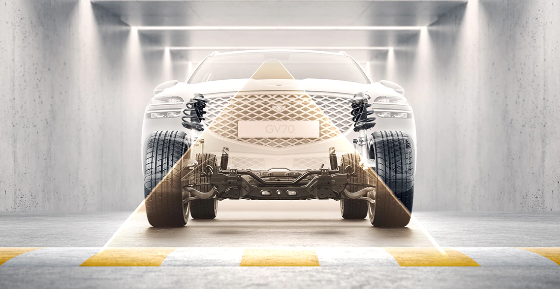 전방 카메라를 통해 인식한 노면 정보와 내비게이션의 지도 정보를 바탕으로, 서스펜션의 감쇠력을 자동으로 조절하여 차량의 움직임을 제어합니다. 과속방지턱과 같이 차량에 큰 충격을 줄 수 있는 상황을 미리 인지하고 대응함으로써 부드럽고 편안한 승차감을 제공합니다.