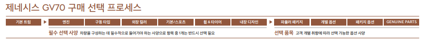 제네시스 브랜드는 단일 트림의 옵션과 가격을 공개하고 엔진 및 옵션에 따라 선택하여 추가 금액을 더해 최종 가격이 결정되는 시스템을 사용하였는데요, 이번 GV70에서도 이러한 가격 결정 방식을 채택하였습니다.