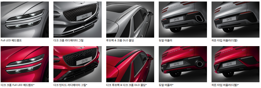 이번 gv70은 스포츠 모델도 출시가 되었기에 스포츠 모델도 따로 선택사양이 존재합니다.