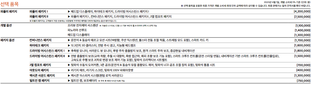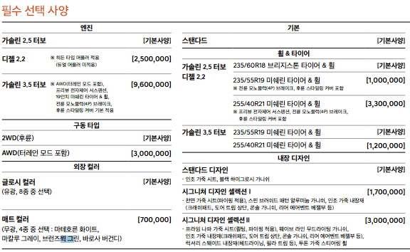 연비 : 10.7km/l (2wd, 18인치 휠 기준)