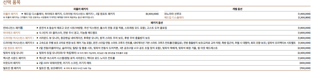 gv80 가격표 및 추가 선택 옵션 품목