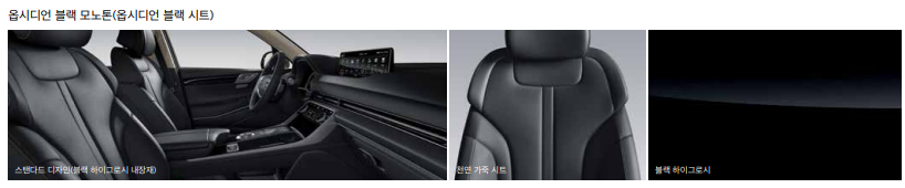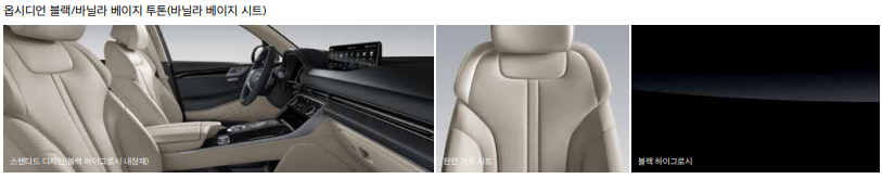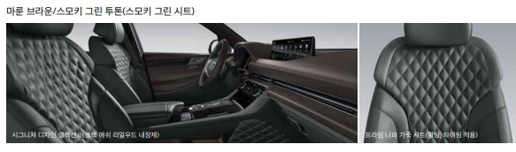 천연 가죽 시트, 운전석 전동시트(12방향, 럼버 서포트 포함), 동승석 전동시트(12방향, 럼버 서포트 포함), 동승석 워크인 디바이스, 운전석 자세 메모리 시스템(스마트 자세 제어 시스템 포함), 앞좌석 통풍 & 열선 시트,