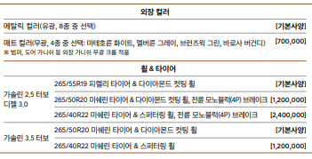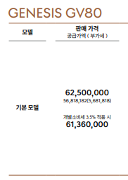gv80 가격표 및 추가 선택 옵션 품목