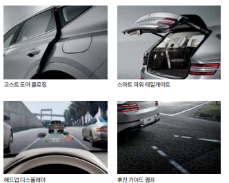 앞좌석 스마트폰 무선 충전, 버튼시동 & 스마트 키, 제네시스 디지털 키, 터치 타입 아웃사이드 도어 핸들, 전자식 파워 차일드 락, 레인 센서, 열선 & 전동식 조절 스티어링 휠,