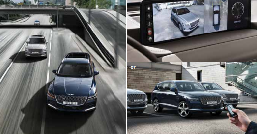 서라운드 뷰 모니터, 원격 스마트 주차 보조 기능을 통하여 차량 주변 상황을 360도 다양한 영상으로 보여주며, 차량 외부에서도 주차나 출차를 할 수 있도록 도와주는 gv80입니다.
