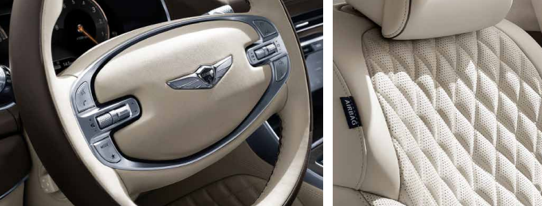투톤 가죽 열선 핸들, 나파 가죽 시트 , 베이지 시트 등도 gv80의 시그니처입니다.