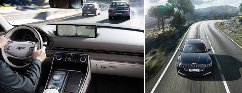 고속도로 주행 보조 장치가 탑재되어 차로 변경 보조 제어도 가능하면서도 고속도로 주행 시 앞차 간격을 유지하며 일정 속도로 주행하도록 도와주는 기능이 제공합니다.