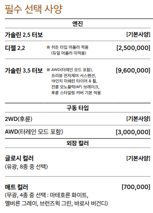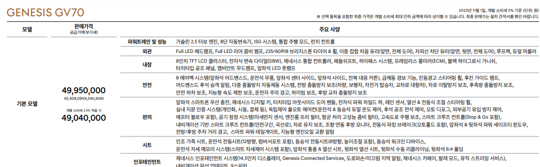 gv70은 기본 모델을 바탕으로 가격이 채택되었습니다.;