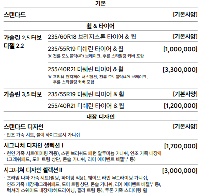 제 넨시스 gv70 가격표를 살펴보겠습니다.