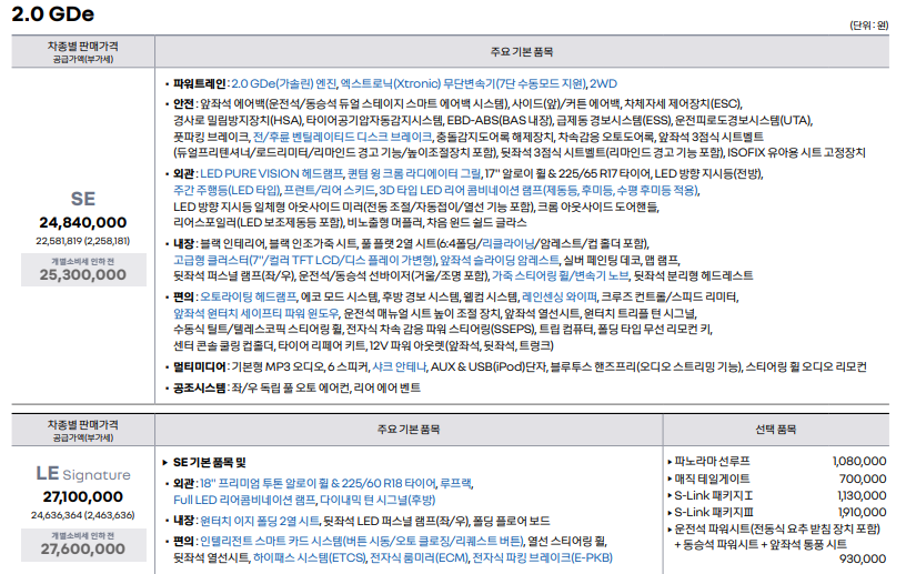 동급 suv에 비교하여도 낮은 가격을 책정하였습니다.