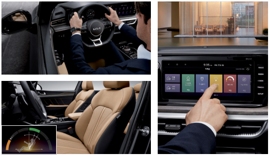 공기청정 시스템과 외부 공기 유입방지 제어 시스템을 통해 쾌적한 실내환경을 제공하고 있습니다. 디지털 키, 스마트 자세 제어 장치를 통해서도 탑승객의 편의 기능을 제공합니다.