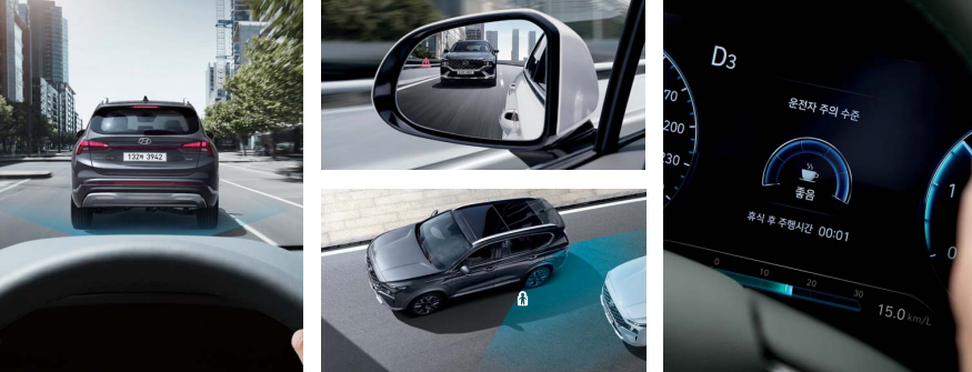 싼타페 하이브리드는 주행 관련하여 가장 최신의 기술들이 탑재되어 있습니다. 운전자 주행 편의를 도와줌과 동시에 탑승객들의 안전을 보호해주는 큰 역할을 합니다.
