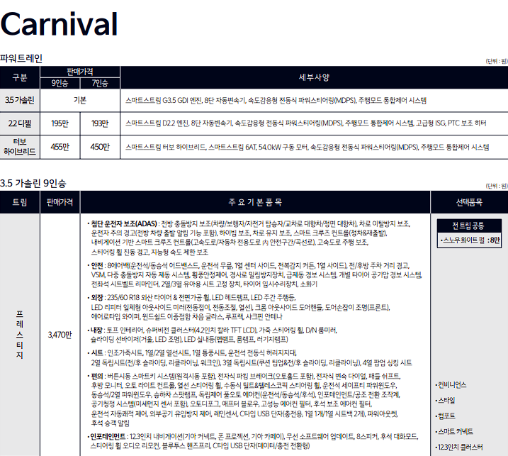 카니발 하이브리드 신차 가격