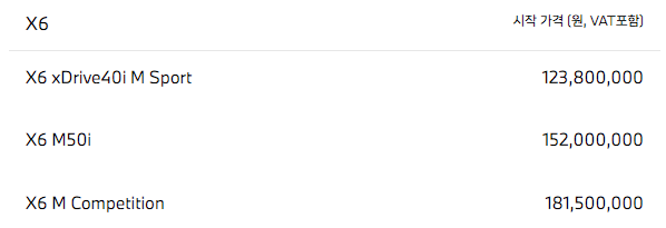 현재 bmw x6는 3가지 모델이 판매 중입니다.