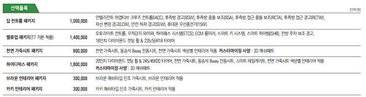하지만 기본 옵션도 충분하기에 선택 품목을 굳이 추가 안하셔도 편의사양이 충분히 탑재되어 있습니다.