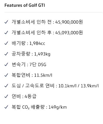 폭스바겐 골프 GTI 특장점