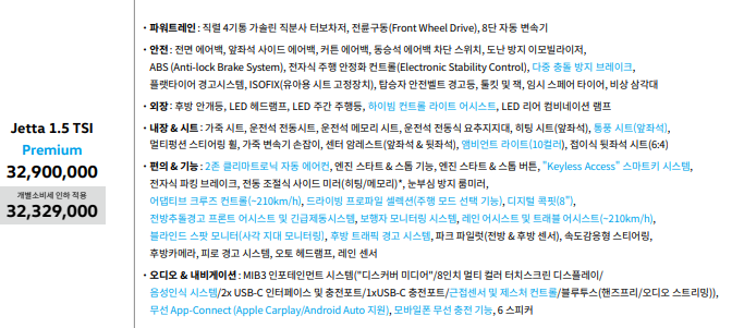 최근, 국내 차량들의 가격 인상 폭이 큰 상황에서 폭스바겐 제타의 가격은 상대적으로 저렴해 보입니다.