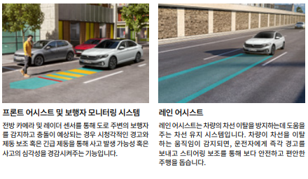 이외에도 led 램프, 스마트키 시스템, lcd 계기판, 전방 추돌 경고 시스템, 사각지대 모니터링, 후방 충돌 방지 등의 주행 편의사양도 기본으로 탑재되었습니다.