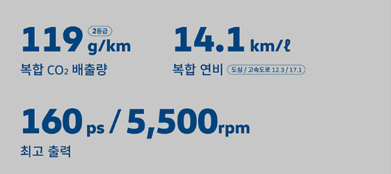 또한, 최대 출력은 160마력과 최대 토크 25.5를 발휘합니다.