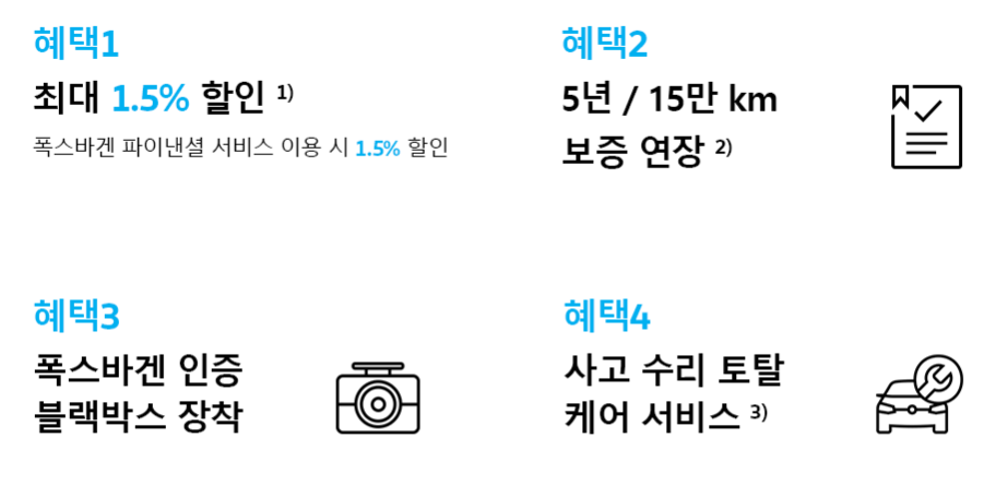 차량 가격 할인, 보증 연장, 블랙박스 장착, 사고 수리 서비스 등의 혜택이 제공됩니다.