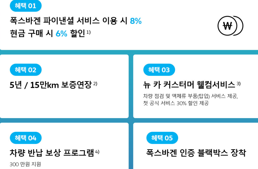 1. 현금 구매 시 6% 할인, 파이낸셜 서비스 이용 시 8% 할인