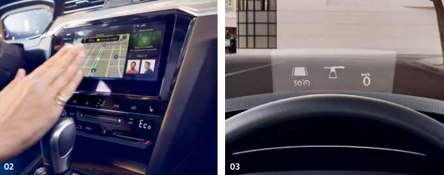 헤드업 디스플레이는 주행 정보를 컴바이너 스크린에 고해상 그래픽으로 디스플레이해주어 운전자가 도로에 시선을 유지한 채로 운전에 도움을 줍니다.
