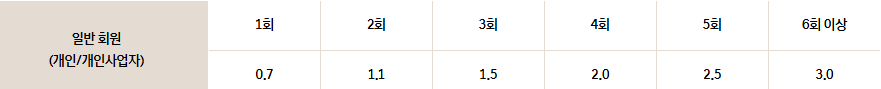 | 1회 | 2회 | 3회 | 4회 | 5회 | 6회 이상 |