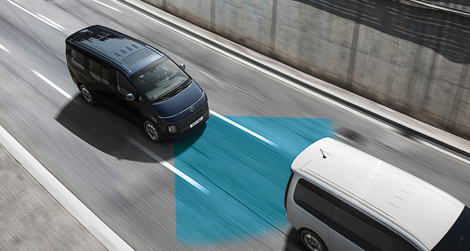 스타리아 라운지는 안전 하차 보조 기능이 적용되며 7개의 에어백이 장착됩니다.