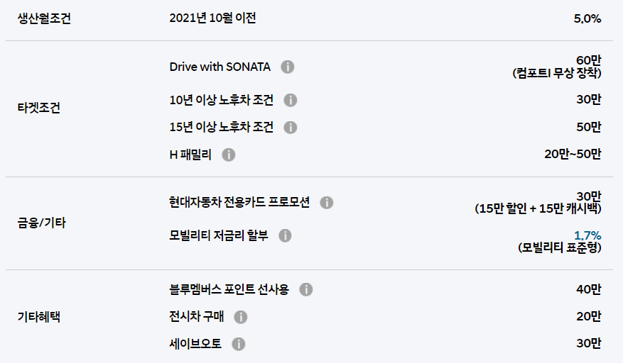 쏘나타 2021년 12월 판매조건, 구매 혜택