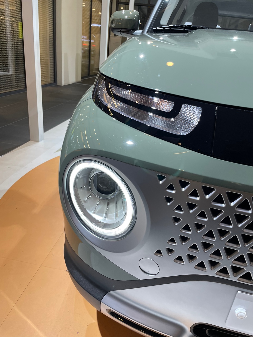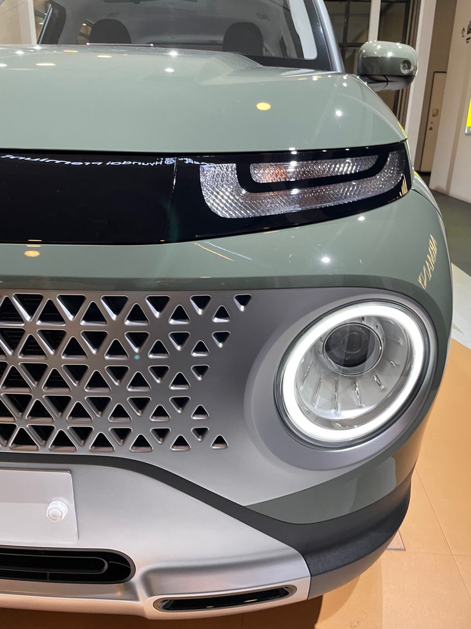 캐스퍼 범퍼는 매우 귀엽습니다. 동글동글한 모습의 램프 사이에 격자무늬 그릴이 존재합니다. 또한 헤드라이트, 방향지시등 램프는 위쪽에 날렵하게 존재하고 있어, 세련된 모습을 보여주기도 합니다.