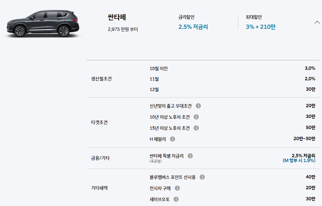 2021. 1월 싼타페 판매조건, 구매 혜택