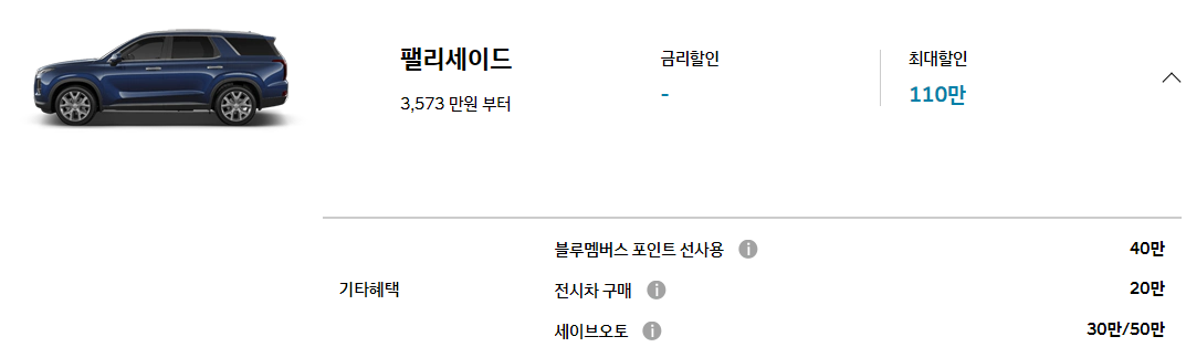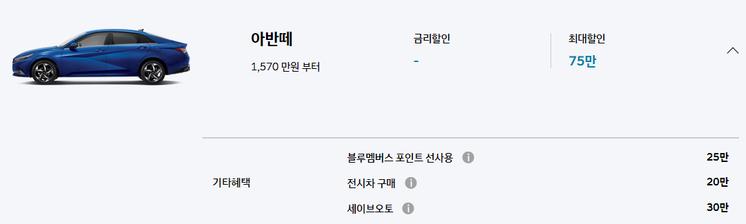 그래서인지 아쉽게도 하이브리드 모델에는 블루멤버스 포인트, 전시차 구매 할인, 외에는 특별한 할인 혜택이나 프로모션이 제공되지 않습니다.