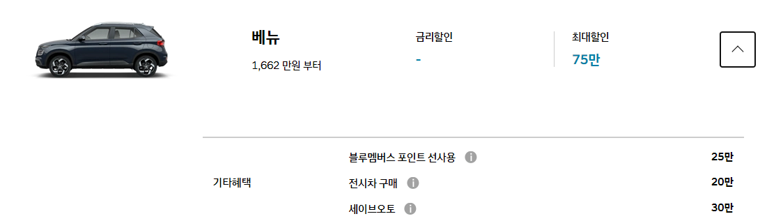 베뉴는 2021. 1월 구매 혜택이 별로 없습니다.