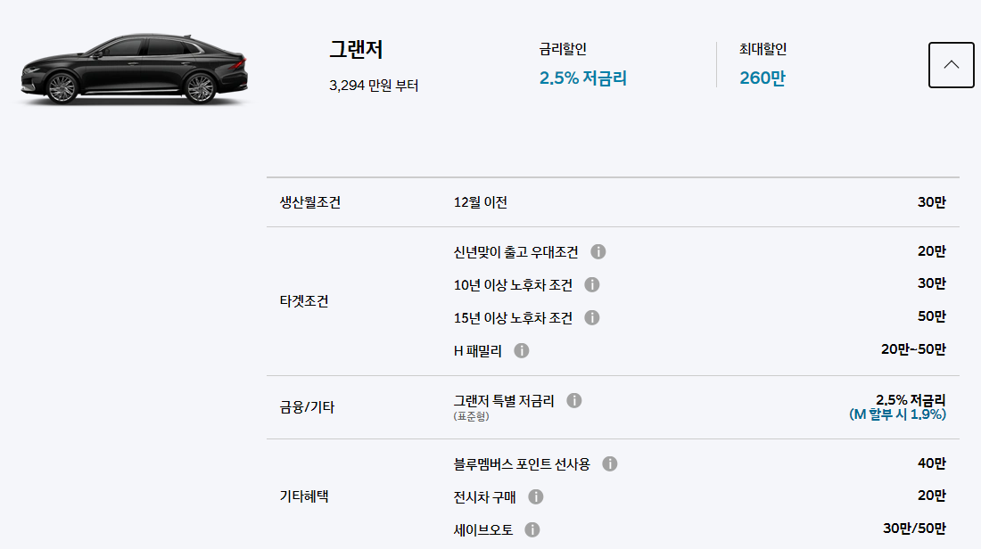 2021. 1월 그랜져 판매조건, 구매 혜택