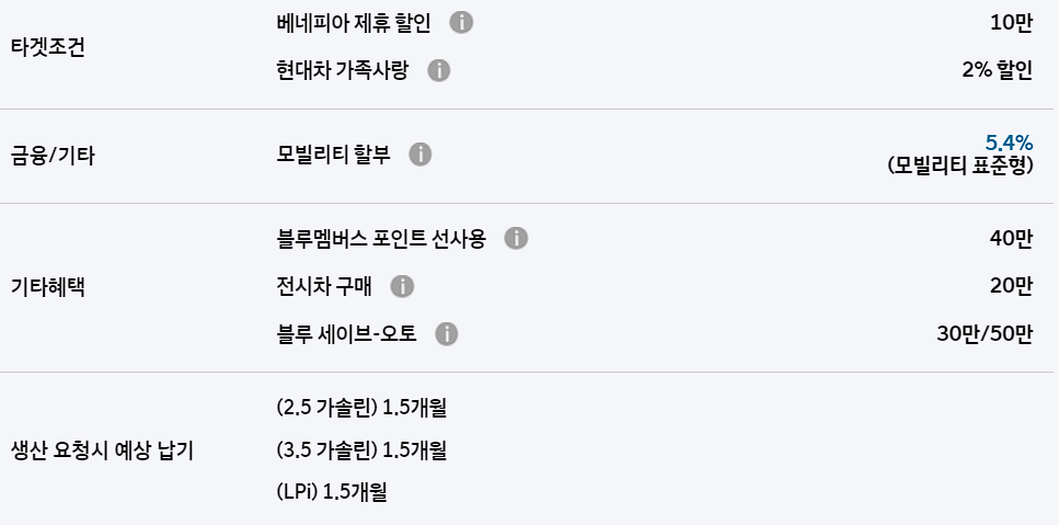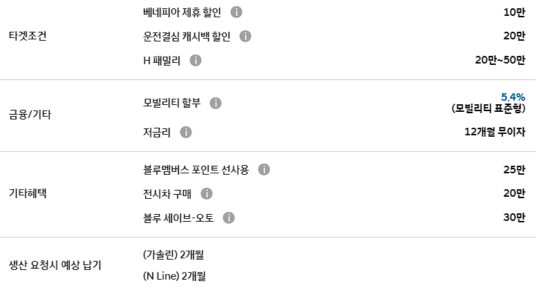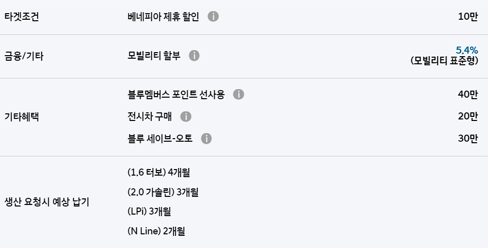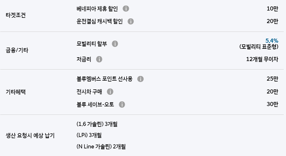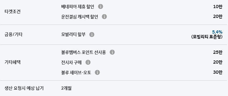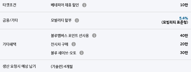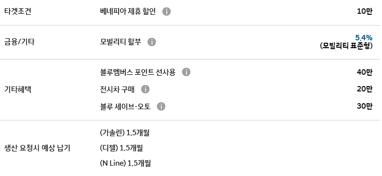 이외에도 운전결심 캐시백, 베네피아 제휴 할인, 모빌리티 할부 등의 혜택이 주어집니다.