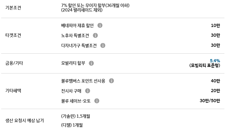 팰리세이드 10월 구매 고객은 여러 가지 할인 혜택을 받을 수 있습니다.