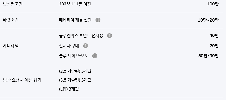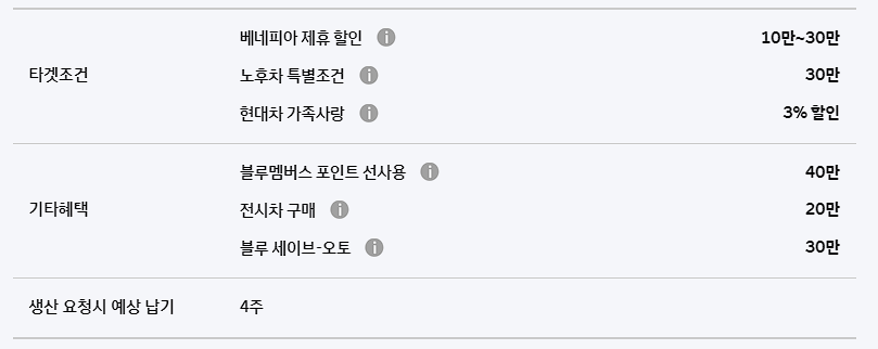 구매혜택 관련 자세한 사항은 현대자동차 지점/대리점으로 문의해 주시기 바랍니다.