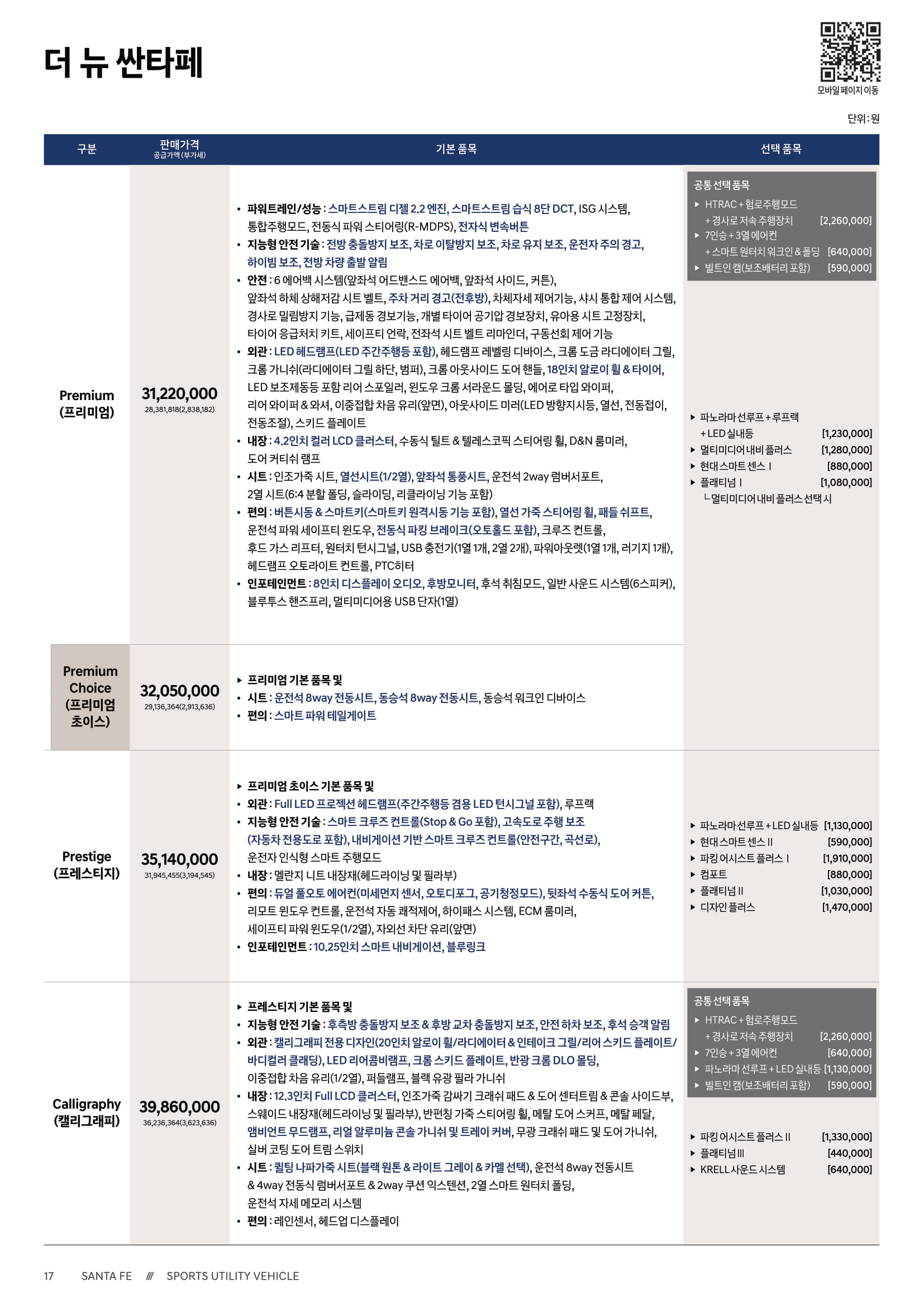 그럼 현대자동차 출처의 싼타페 카탈로그 가격 한번 살펴볼게요