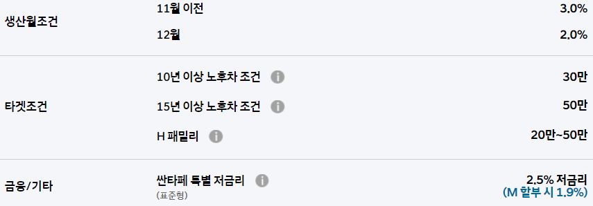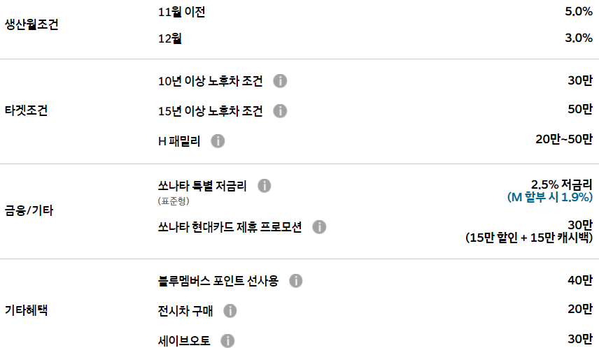 또한 타깃 조건으로 15년 이상 노후차를 보유할 시 50만원을 추가로 할인합니다.