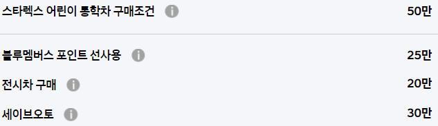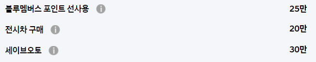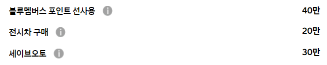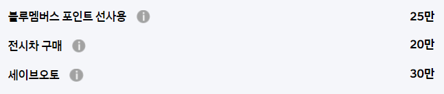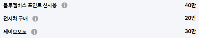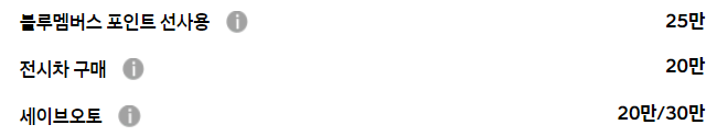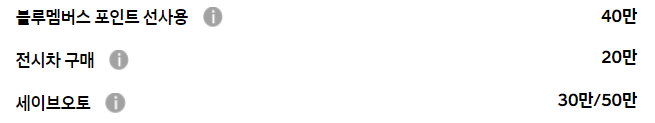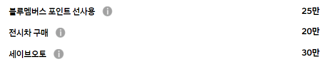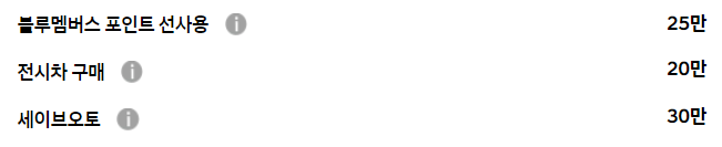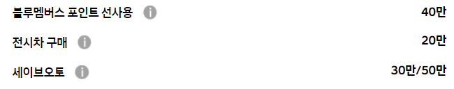일반적인 블루멤버스, 전시차 구매 등의 기본적인 할인만 존재할 뿐
