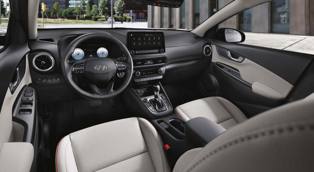 또한, 2022년형 코나에는 실내 색상을 그레이에서 베이지 색상으로 변경하였습니다. 좀 더 고급스러운 실내 색상으로 만족할만한 부분입니다.