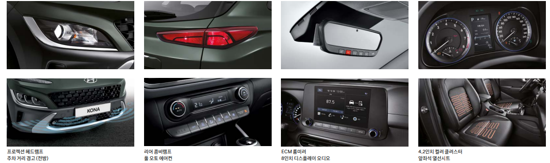 코나 연식변경 모델은 기본 옵션들을 늘려, 상품성을 강화하였습니다.