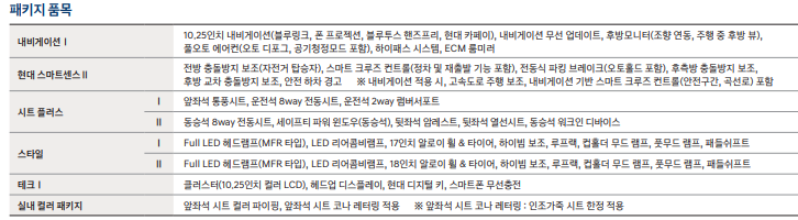 중간 트림은 코나 모던 사양에는 10.25인치 모니터가 적용되어있습니다. 내비게이션 무선 업데이트 기능이 지원되며 내비게이션 패키지를 기본 적용하여 편의성을 제공합니다.