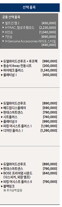 신형 디 올 뉴 싼타페 하이브리드 가격표