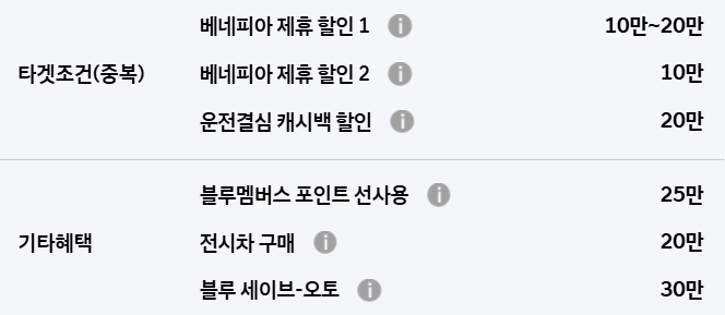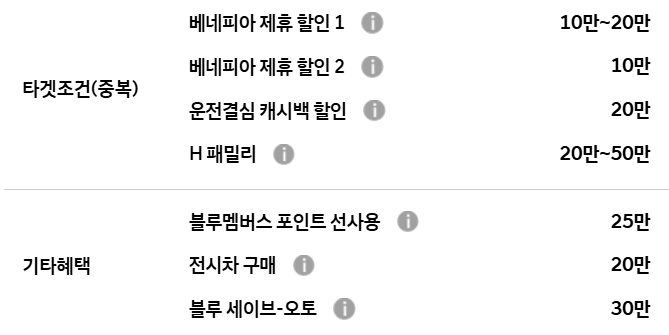 코나 할인은 베네피아 제휴 할인, h 패밀리, 운전결심 캐시백 할인 등의 혜택을 받을 수 있습니다.