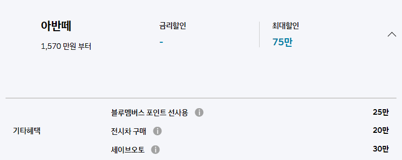 아반떼, 아반떼 하이브리드는 5월 금리할인이나 구매혜택이 특별히 존재하지 않습니다.