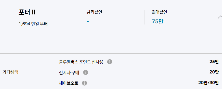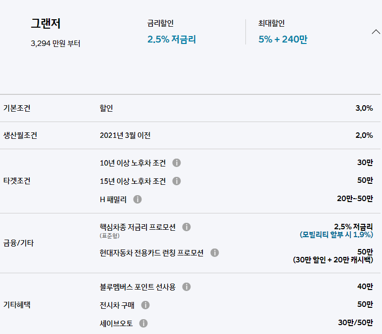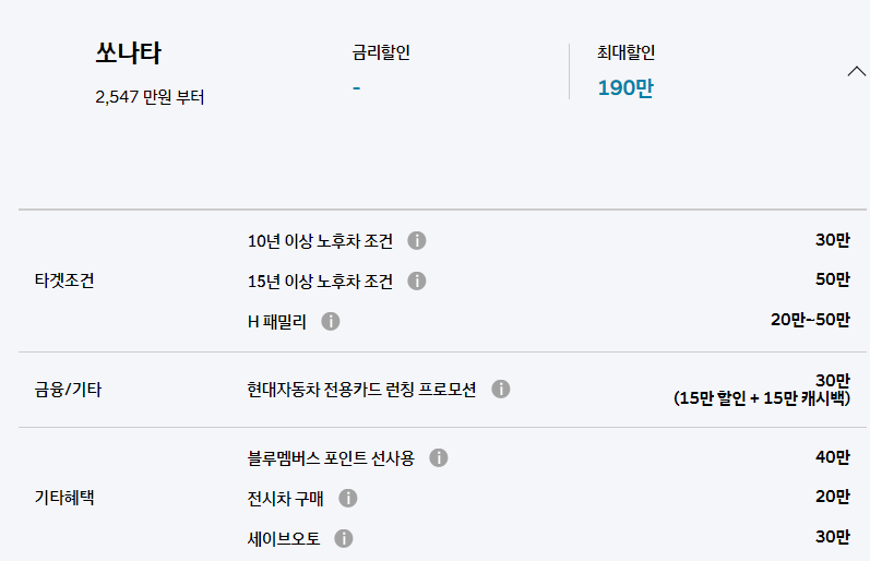 현대자동차에서도 각 모델별 판매조건을 알려주었는데요,